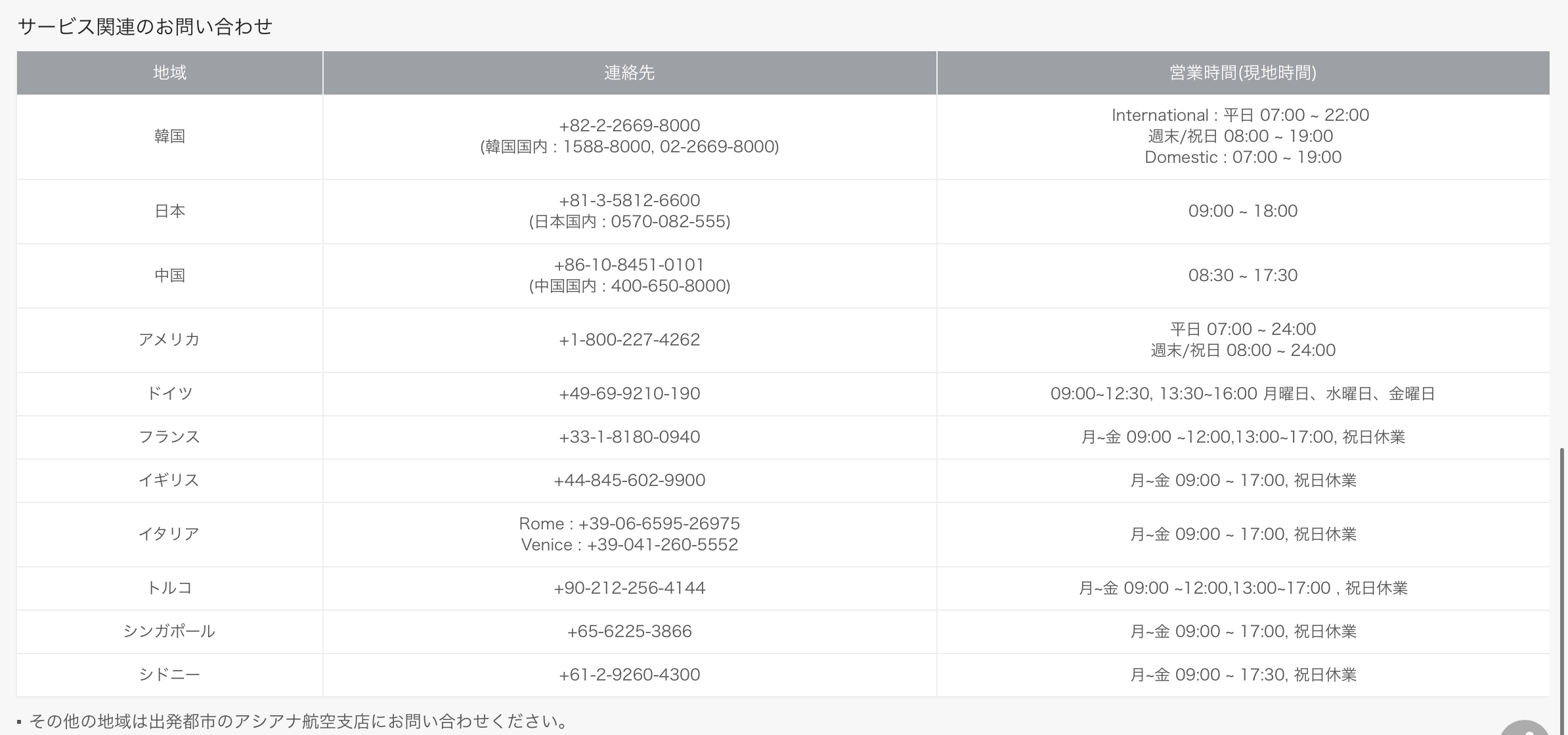 アシアナ航空の便変更、キャンセルについて